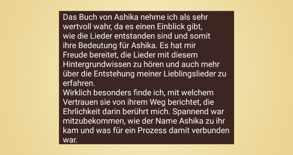 ♥ Die wichtigsten Stationen und größten Herausforderungen auf Ashika’s spirituellem Weg lassen dich mitfühlen und Lied um Lied inspiriert dich, deine eigene Seelenstimme zu entfalten